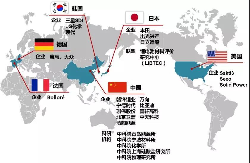 由于當(dāng)前磷酸鐵鋰和三元鋰電池自身的瓶頸,以及固態(tài)電池的潛在優(yōu)勢(shì),歐美、日韓、中國(guó)等國(guó)家的涉及動(dòng)力電池、汽車(chē)及能源方面的產(chǎn)業(yè)鏈上眾多企業(yè)正在積極布局和研發(fā)固態(tài)電池。