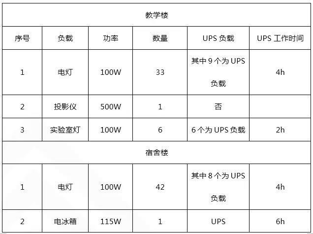 實地勘察學校多類型負載并進行分類,確認重要負載功率及不斷電時間,計算出需要的電池容量。根據(jù)學校屋面情況和光照情況,確認組件規(guī)格和數(shù)量。