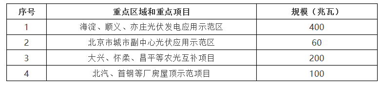 “十三五”時(shí)期,全市新增光伏發(fā)電裝機(jī)容量100萬(wàn)千瓦,實(shí)施百萬(wàn)千瓦光伏發(fā)電工程。加快分布式光伏在各領(lǐng)域應(yīng)用,實(shí)施“陽(yáng)光校園、陽(yáng)光商業(yè)、陽(yáng)光農(nóng)業(yè)、陽(yáng)光基礎(chǔ)設(shè)施”五大陽(yáng)光工程。重點(diǎn)建設(shè)順義、海淀、亦莊等一批光伏集中應(yīng)用示范區(qū),實(shí)施北汽廠房屋頂、首鋼廠房屋頂、農(nóng)光互補(bǔ)等一批光伏集中應(yīng)用示范項(xiàng)目。