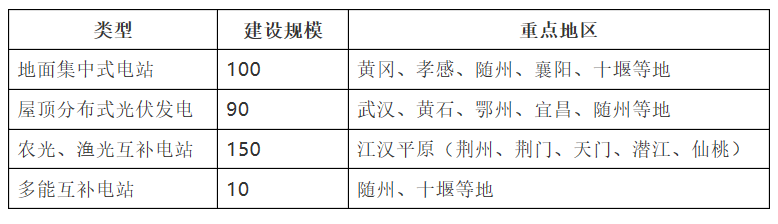 表3:湖北省“十三五”太陽(yáng)能利用建設(shè)布局(單位:萬(wàn)kW)