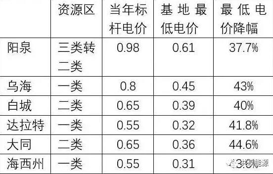 領跑基地投標電價不斷刷新最低電價---第三批領跑基地投標中,在白城的0.39元/千瓦時最低投標電價之后,最低電價仍在不斷刷新,從達拉特旗的0.32元/千瓦時到大同的0.36元/千瓦時,再到青?;氐?.31元/千瓦時。