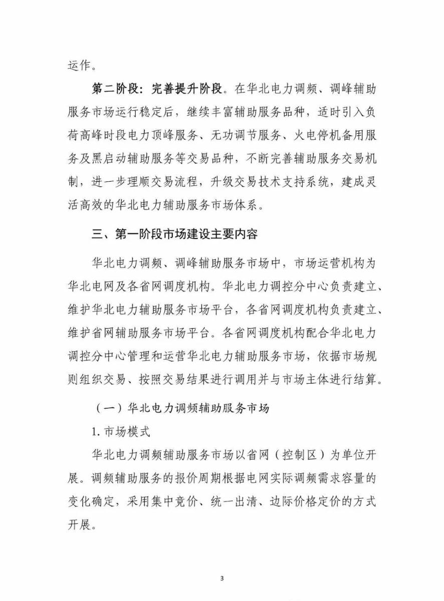 《方案》的整體思路清晰,將立足區(qū)域市場,分階段分步驟建設(shè)華北電力輔助服務(wù)市場,在“市場建設(shè)初期現(xiàn)行開展調(diào)頻輔助服務(wù)市場化交易,待調(diào)頻市場運(yùn)行穩(wěn)定后,適時引入調(diào)峰輔助服務(wù),開展華北及省網(wǎng)調(diào)峰輔助服務(wù)市場化交易”。