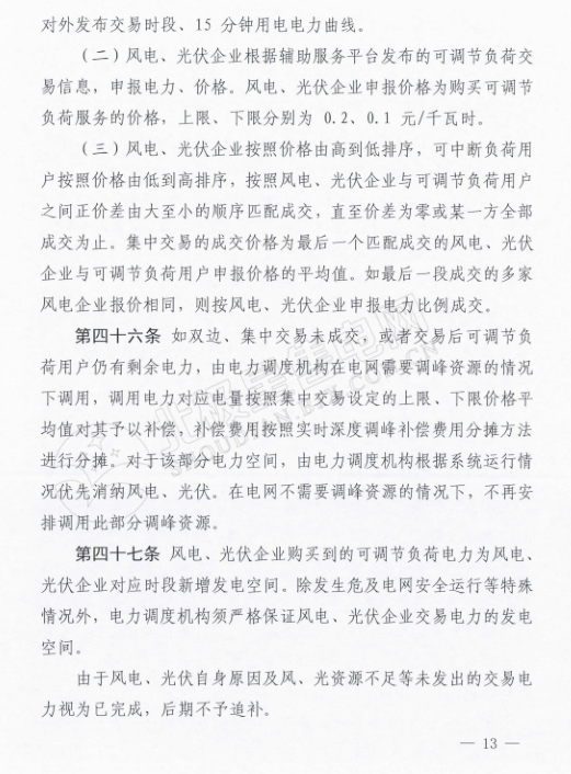 而在這份《電力輔助服務(wù)市場(chǎng)運(yùn)營規(guī)則》里,可以看出寧夏全力支持新能源消納的態(tài)度。為火電企業(yè)的停機(jī)備用也做出了調(diào)停補(bǔ)償?shù)囊?guī)定,補(bǔ)償時(shí)間最長為10天,免去了火電企業(yè)的后顧之憂。另外,還規(guī)定了風(fēng)電、光伏企業(yè)購買到的可調(diào)節(jié)負(fù)荷電力為風(fēng)電、光伏企業(yè)對(duì)應(yīng)時(shí)段的新增發(fā)電空間,電力調(diào)度機(jī)構(gòu)須嚴(yán)格保證風(fēng)電、光伏企業(yè)交易電力的發(fā)電空間,為風(fēng)、光企業(yè)增加了一道護(hù)身符。