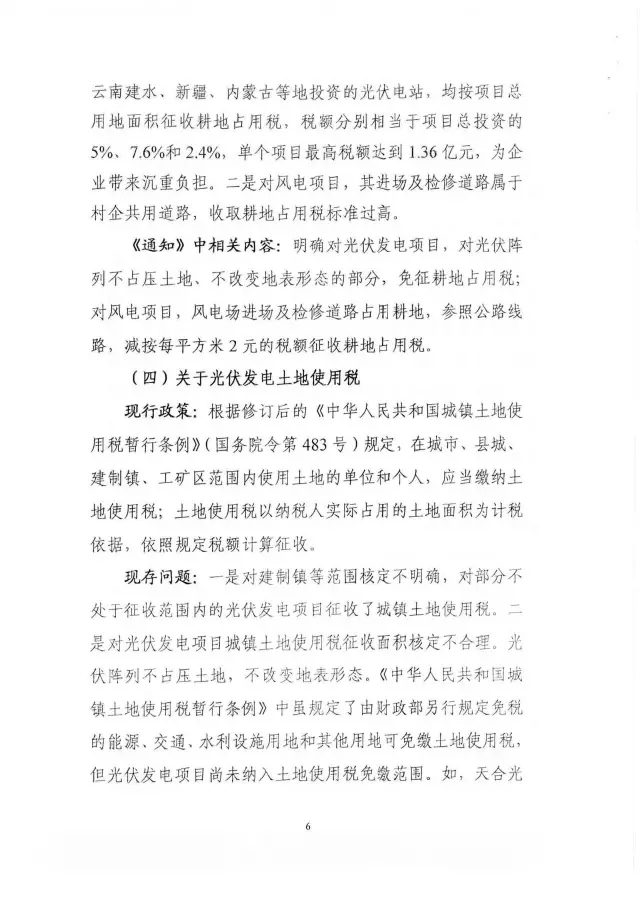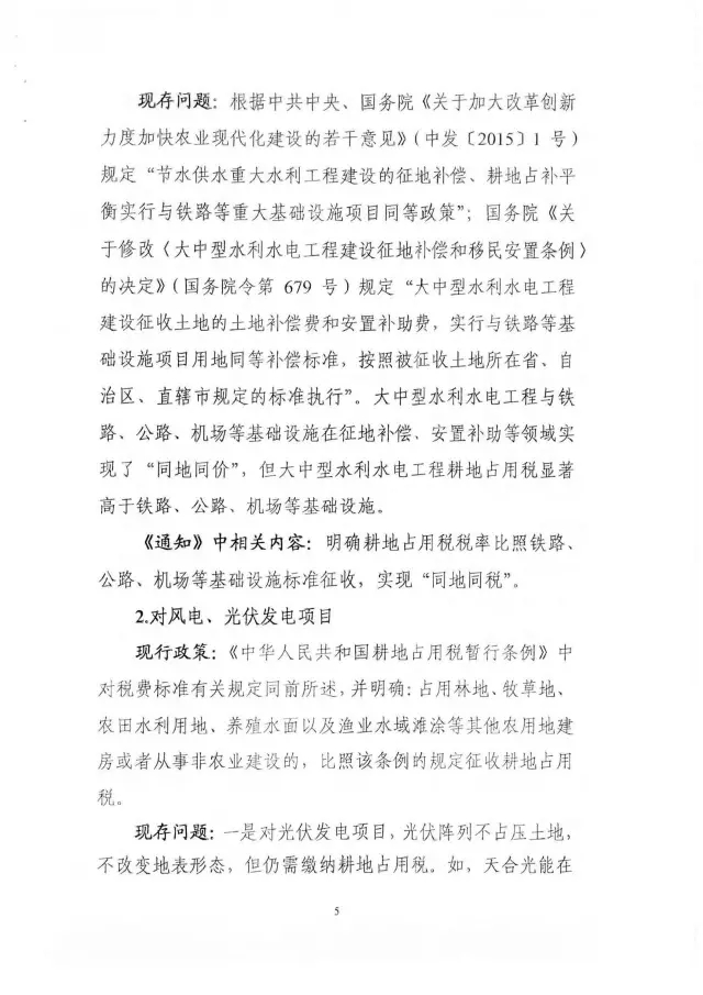 2、光伏發(fā)電項目占用耕地,對光伏陣列不占壓土地、不改變地表形態(tài)的部分,免征征地占用稅;
