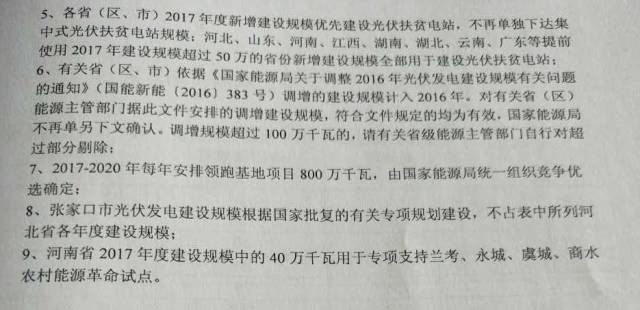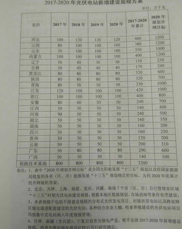 中國儲能網(wǎng)訊:日前,國家能源局出臺《關(guān)于可再生能源發(fā)展“十三五”規(guī)劃實施的指導意見》,對“十三五”期間2017-2020年的光伏發(fā)展規(guī)模進行了規(guī)劃。文件指出未來4年(2017-2020)國家能源局規(guī)劃的普通光伏電站指標為54.5GW,領(lǐng)跑者項目指標為每年8GW(共計32GW)。同時規(guī)定甘肅、新疆(含兵團)、寧夏在棄光率明顯好轉(zhuǎn)之前不做安排;北京、上海、天津、福建、重慶、西藏、海南7個省市自行管理本區(qū)域“十三五”期間的建設指標;分布式光伏、村級扶貧電站及跨省跨區(qū)輸電通道配套建設的光伏電站都不包含在本指標內(nèi)。