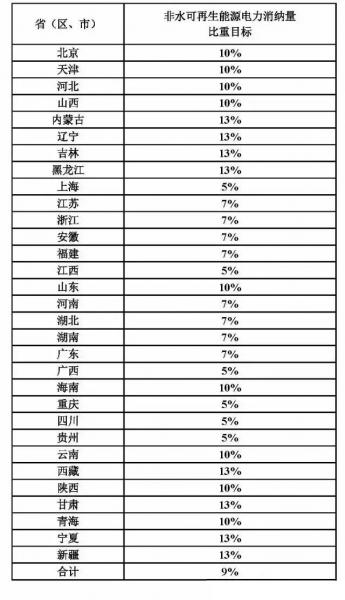 國家能源局根據(jù)各地區(qū)可再生能源資源狀況和能源消費(fèi)水平,依據(jù)全國可再生能源開發(fā)利用中長期總量目標(biāo),制定各?。▍^(qū)、市)能源消費(fèi)總量中的可再生能源比重目標(biāo)和全社會(huì)用電量中的非水電可再生能源電量比重指標(biāo),并予公布。鼓勵(lì)各省(區(qū)、市)能源主管部門制定本地區(qū)更高的可再生能源利用目標(biāo)。