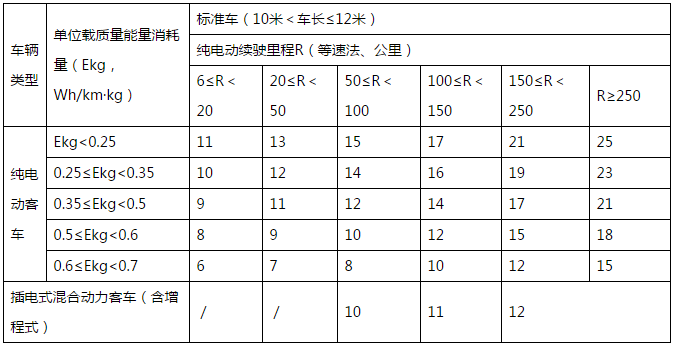 注:上述補(bǔ)助標(biāo)準(zhǔn)以10-12米客車為標(biāo)準(zhǔn)車給予補(bǔ)助,其他長度純電動(dòng)客車補(bǔ)助標(biāo)準(zhǔn)按照上表單位載質(zhì)量能量消耗量和純電動(dòng)續(xù)駛里程劃分,插電式混合動(dòng)力客車(含增程式)補(bǔ)助標(biāo)準(zhǔn)按照上表純電動(dòng)續(xù)駛里程劃分。其中,6米及以下客車按照標(biāo)準(zhǔn)車0.2倍給予補(bǔ)助;6米<車長≤8米客車按照標(biāo)準(zhǔn)車0.5倍給予補(bǔ)助;8米<車長≤10米客車按照標(biāo)準(zhǔn)車0.8倍給予補(bǔ)助;12米以上、雙層客車按照標(biāo)準(zhǔn)車1.2倍給予補(bǔ)助。