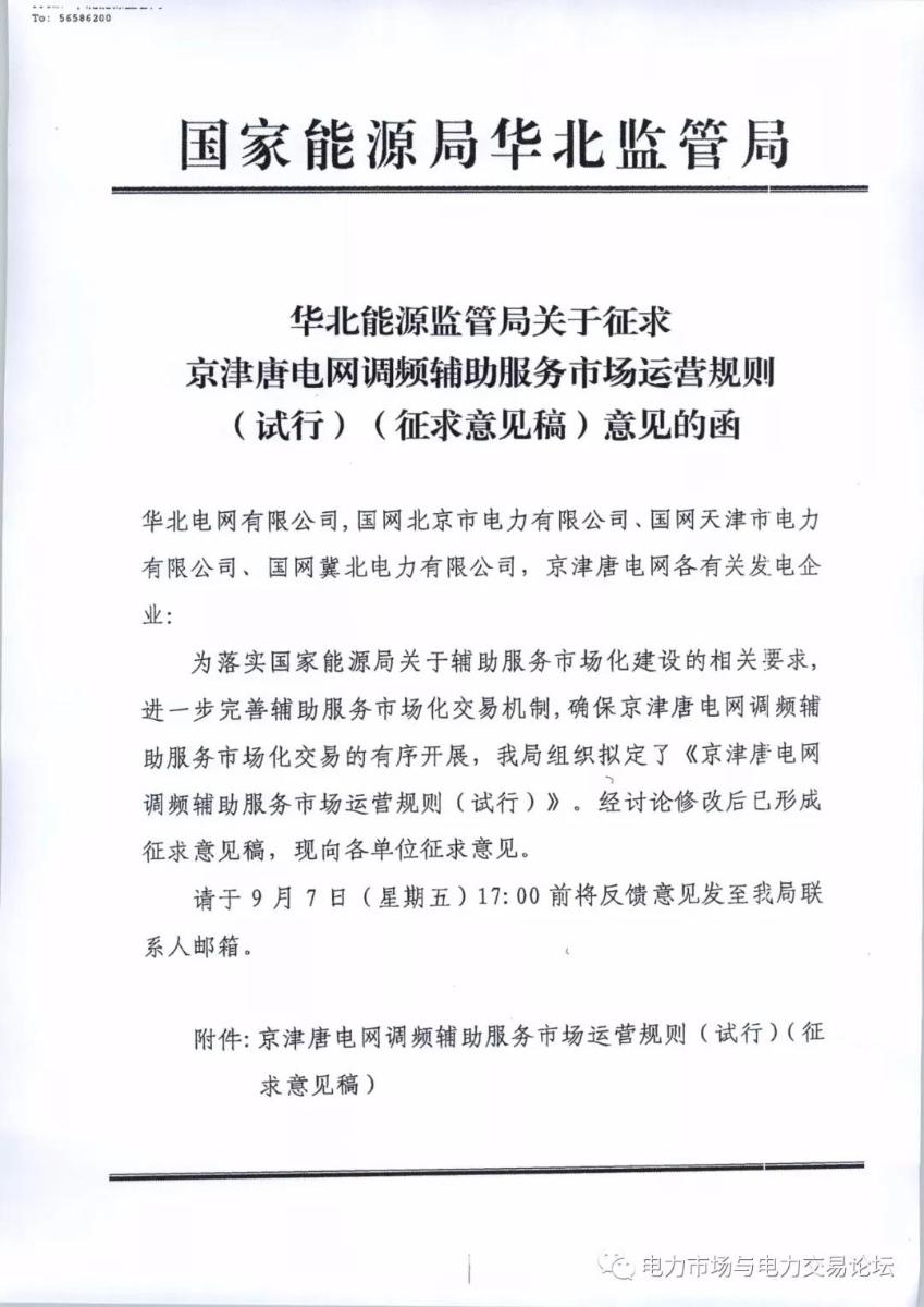 《京津唐電網(wǎng)調(diào)頻輔助服務(wù)市場運營規(guī)則(試行)》(征求意見稿)