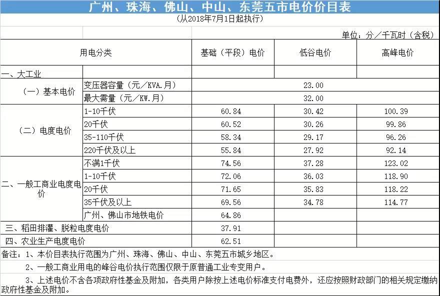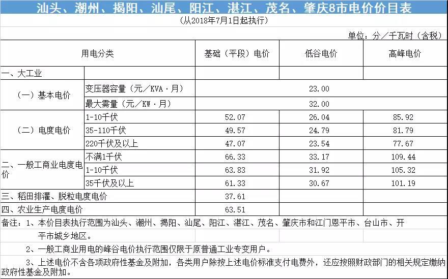 一、全省除深圳市外一般工商業(yè)電度電價每千瓦時統(tǒng)一降低5.7分(含稅,下同);深圳市的“普通工商業(yè)及其他用電”的平段電價每千瓦時降低7.67分,峰段和谷段的電價按原有比價同比例降低。各地各用戶調價后的具體電價標準見附件。