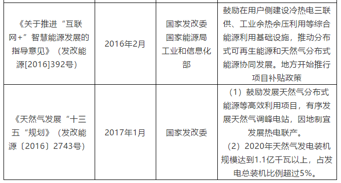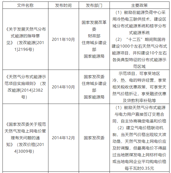 國家層面對于天然氣發(fā)電及燃?xì)饴?lián)供項目有明確補(bǔ)貼支持和數(shù)量要求的政策性文件主要如下表1所示。