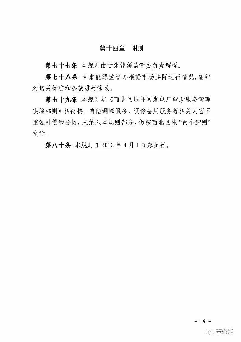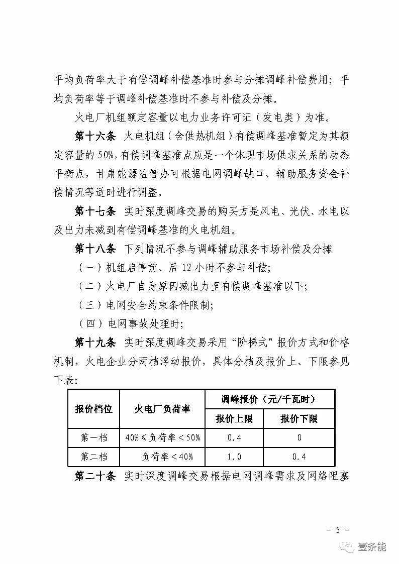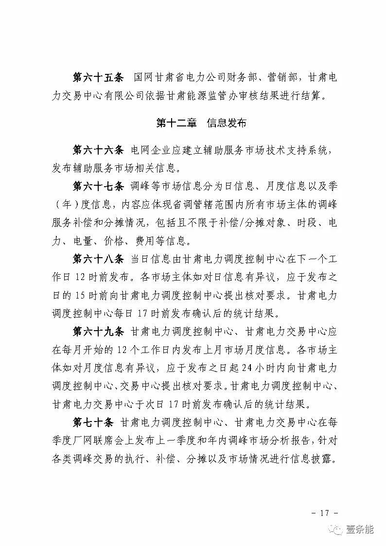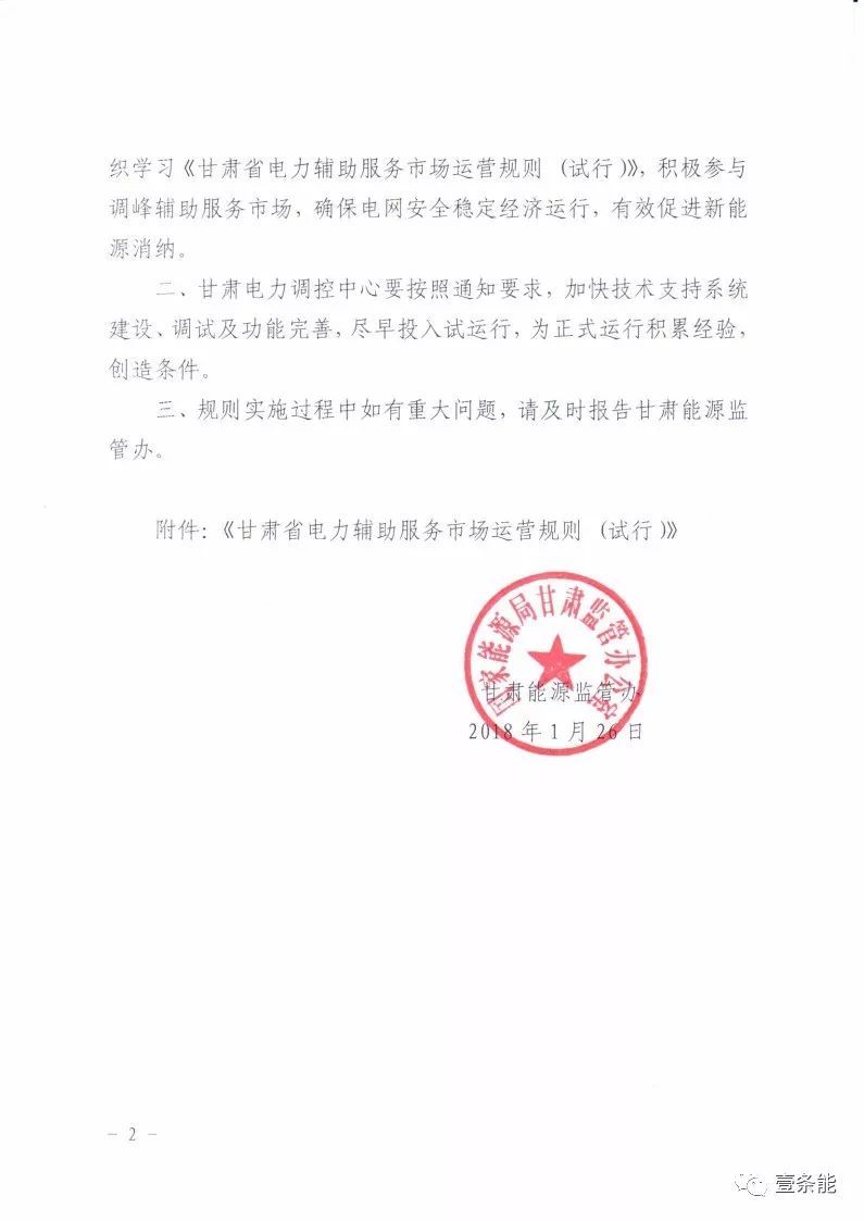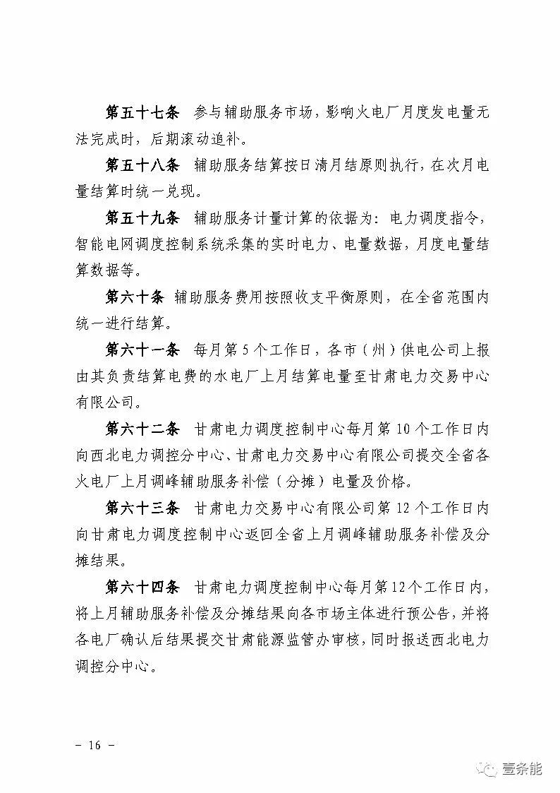 中國儲能網(wǎng)訊:國家能源局甘肅監(jiān)管辦日前發(fā)布了《甘肅省電力輔助服務市場運營規(guī)則(試行)》,于2018年4月1日起執(zhí)行。電力輔助服務市場的市場主體為已取得發(fā)電業(yè)務許可證的省內(nèi)發(fā)電企業(yè)(包括火電、水電、風電、光伏),以及經(jīng)市場準入的電儲能和可中斷負荷電力用戶。自備電廠可自愿參與電力輔助服務市場。網(wǎng)留非獨立電廠暫不參與電力輔助服務市場。自發(fā)自用式分布式光伏、扶貧光伏暫不參與電力輔助服務市場。