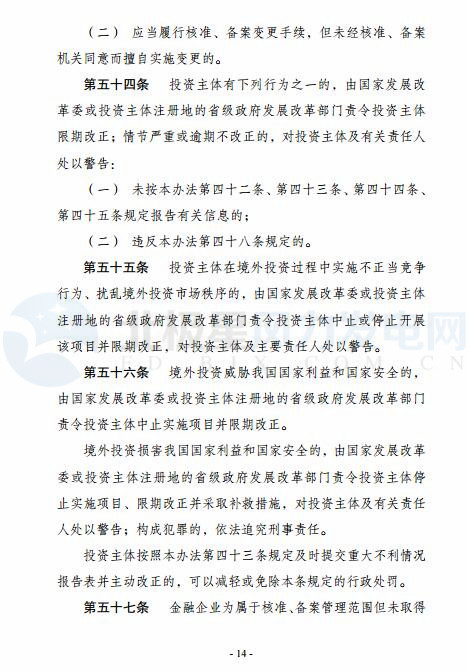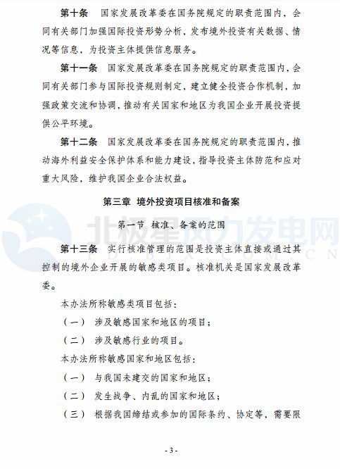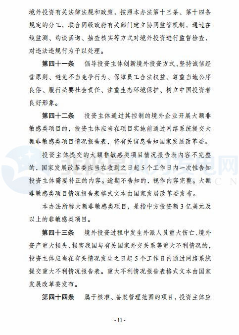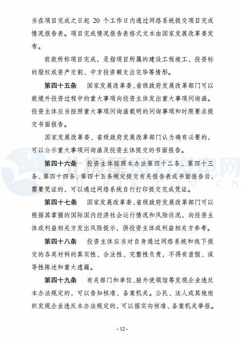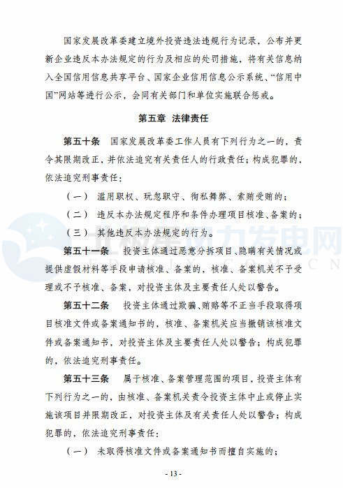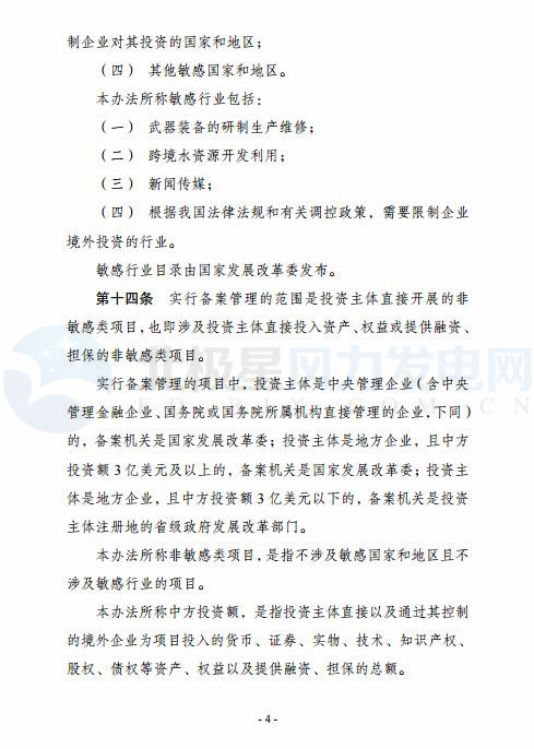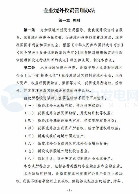 中國(guó)儲(chǔ)能網(wǎng)訊:國(guó)家發(fā)改委昨日(12月26日)發(fā)布中華人民共和國(guó)國(guó)家發(fā)展和改革委員會(huì)令第11號(hào),公布《企業(yè)境外投資管理辦法》,對(duì)境外投資項(xiàng)目核準(zhǔn)和備案、境外投資監(jiān)管、法律責(zé)任等作出l了規(guī)定。以下為文件全文: