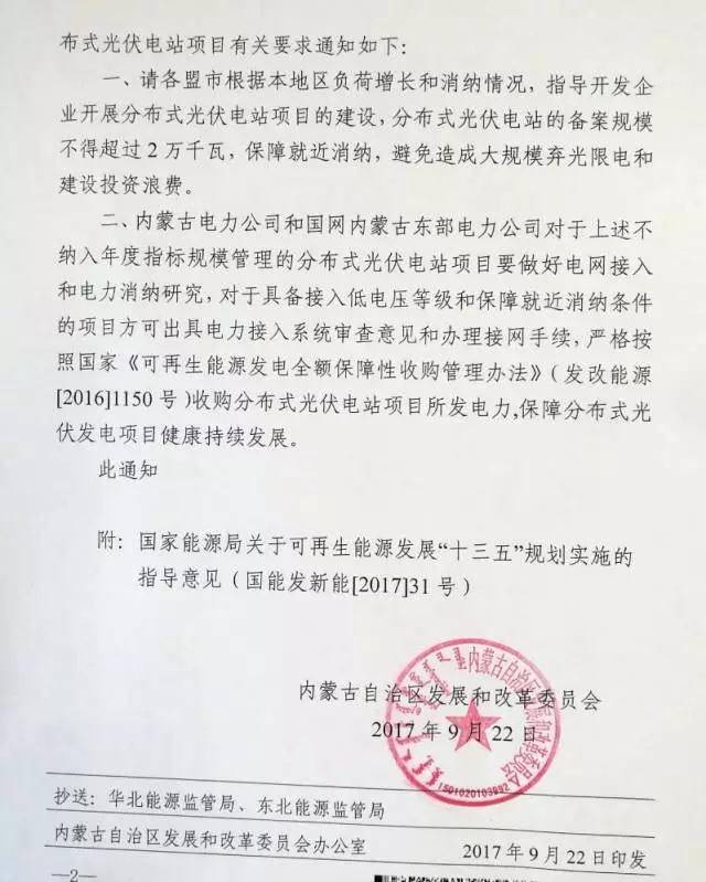 中國儲能網訊:9月22日,內蒙古發(fā)改委發(fā)布《關于我區(qū)分布式光伏電站有關事宜的通知》要求分布式光伏電站的備案規(guī)模不得超過2萬千瓦,同時要求電網公司對不限規(guī)模指標的分布式光伏電站做好電力消納研究和電網接入,保障分布式光伏電站健康持續(xù)發(fā)展。