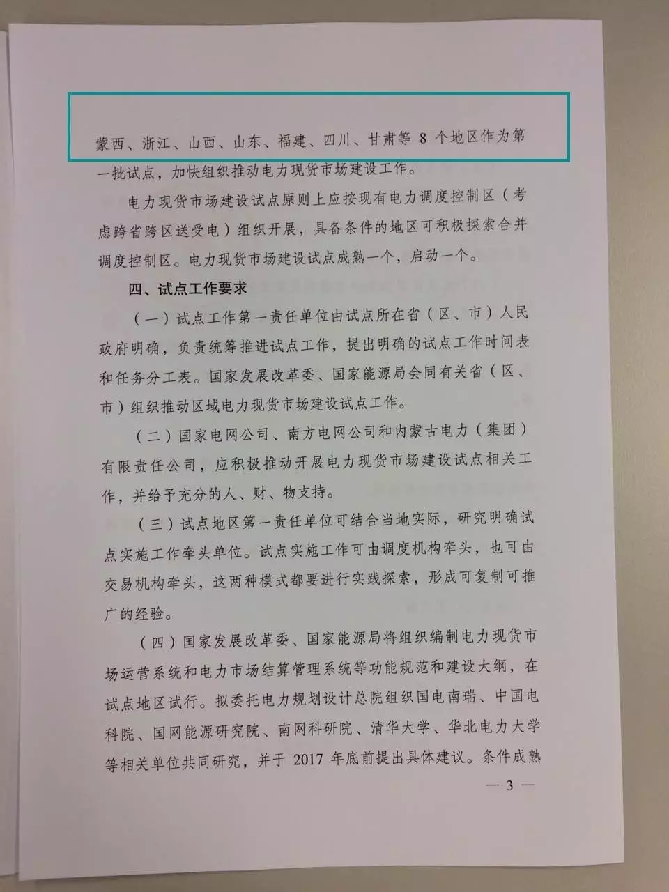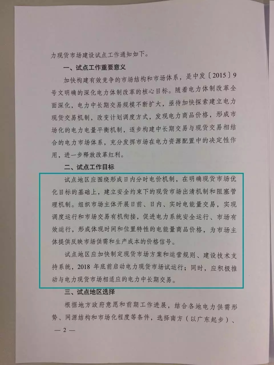 中國儲能網(wǎng)訊:8月28日,國家發(fā)改委和國家能源局下發(fā)《關(guān)于開展電力現(xiàn)貨市場建設試點工作的通知》文件,距離7月25日的電改吹風會上透露將開展現(xiàn)貨試點剛過去一個月左右的時間,考慮到2018年底前要啟動,而電力現(xiàn)貨市場需要準備的工作量非常大,盡快推動工作才能滿足時間表的要求,但是邁的步子快了也需要穩(wěn)。