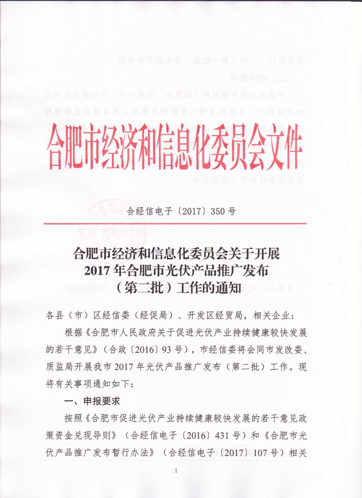 中國儲能網(wǎng)訊:合肥市經(jīng)濟與信息化委員化關(guān)于開展2017年合肥市光伏產(chǎn)品推廣發(fā)布(第二批)的通知