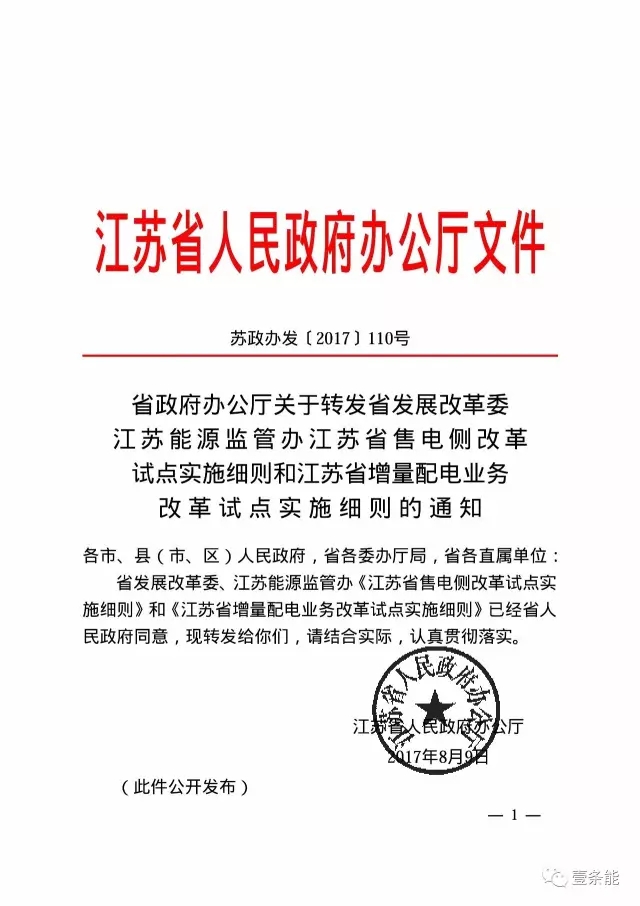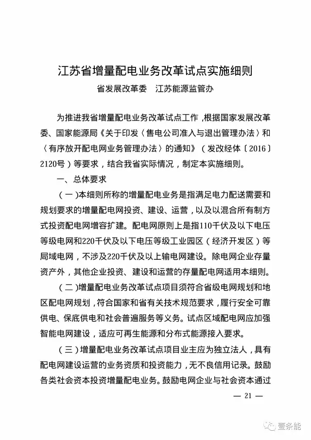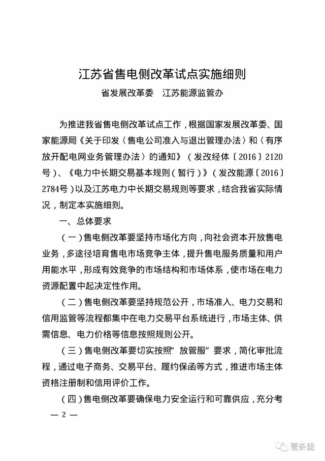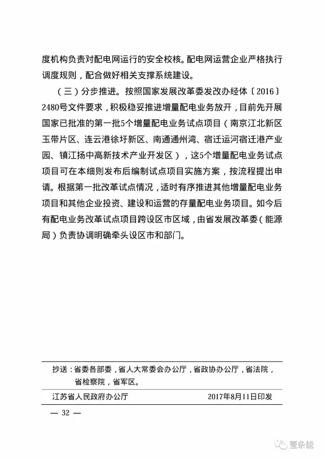 江蘇發(fā)布售電側(cè)改革試點(diǎn)實(shí)施細(xì)則和增量配電業(yè)務(wù)改革試點(diǎn)實(shí)施細(xì)則