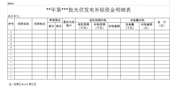 附件5:《**年第*批光伏發(fā)電補(bǔ)貼資金明細(xì)表》(詳見配圖)
