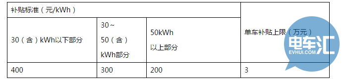 以提供驅(qū)動(dòng)動(dòng)力的動(dòng)力電池總儲(chǔ)電量為依據(jù),采取分段超額累退方式給予補(bǔ)助,具體如下: