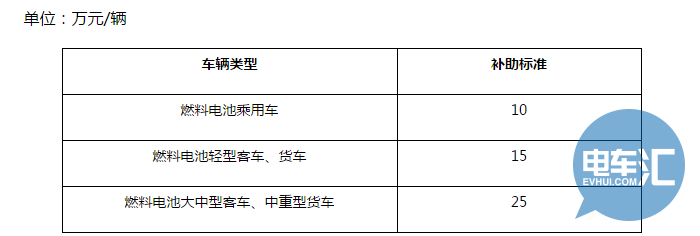 燃料電池汽車補(bǔ)助標(biāo)準(zhǔn)