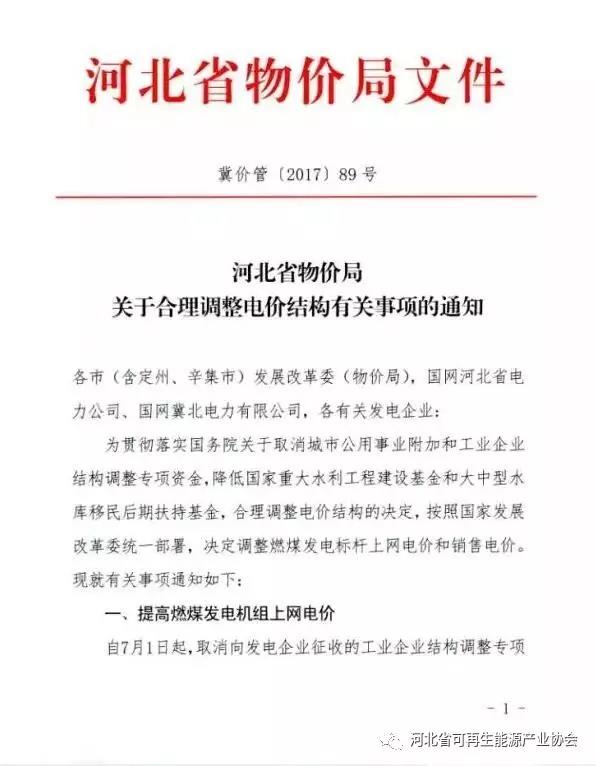 中國儲能網(wǎng)訊:7月14日,河北省物價局印發(fā)《關于合理調(diào)整電價結(jié)構(gòu)有關事項的通知》,通知中稱,決定調(diào)整燃煤發(fā)電標桿上網(wǎng)電價和銷售電價。