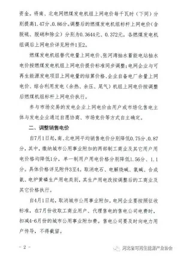 調(diào)整銷售電價:自7月1日起,南、北網(wǎng)平均銷售電價分別降低0.75分、0.87分,其中繳納城市公用事業(yè)附加的兩部制工商業(yè)及其它用戶用電價格均降低1分,單一制用戶用電價格分別降低1.56分、1.1分。