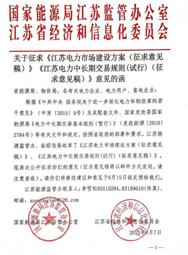 江蘇經(jīng)信委、能監(jiān)辦公布《江蘇電力市場建設(shè)方案征求意見稿》,包括階段性目標和現(xiàn)貨市場建設(shè)方案。