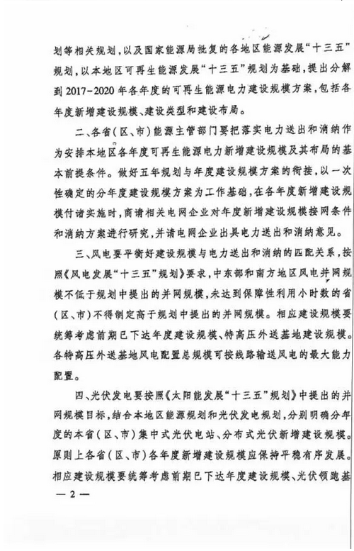 七、有關(guān)省(區(qū)、市)特高壓電力外送通道配套的風(fēng)電、光伏發(fā)電基地,根據(jù)特高壓通道規(guī)劃、批準(zhǔn)時(shí)間和建設(shè)周期單獨(dú)配置,但應(yīng)計(jì)入本省(區(qū)、市)的“十三五”規(guī)劃總規(guī)模,跨越“十三五”、’‘十四五”建設(shè)的特高壓基地,光伏發(fā)電可在2020年安排相應(yīng)建設(shè)規(guī)模,風(fēng)電可在2019年和2020年安排。