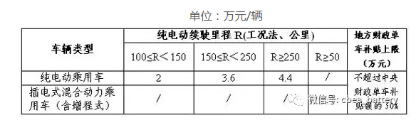 (一)新能源乘用車、插電式混合動力(含增程式)乘用車推廣應用補貼標準如下: