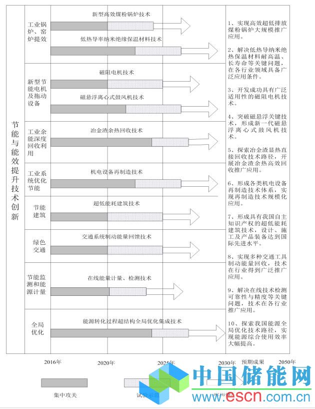 尤為值得注意的是,該《計(jì)劃》列舉了包括“先進(jìn)儲(chǔ)能技術(shù)創(chuàng)新”、“氫能與燃料電池技術(shù)創(chuàng)新”、“能源互聯(lián)網(wǎng)技術(shù)創(chuàng)新”等15項(xiàng)重點(diǎn)任務(wù)。而《路線圖》則明確了上述15項(xiàng)重點(diǎn)任務(wù)的具體戰(zhàn)略方向、創(chuàng)新目標(biāo)及創(chuàng)新行動(dòng)。以下為節(jié)能與能效提升技術(shù)創(chuàng)新路線圖、戰(zhàn)略方向、創(chuàng)新目標(biāo)及創(chuàng)新行動(dòng)具體內(nèi)容。