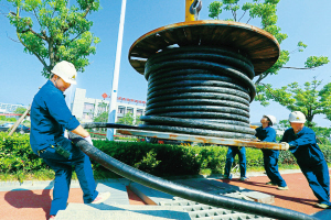圖為7月24日浙江寧波甬城配網(wǎng)公司員工冒高溫敷設(shè)10千伏電纜。