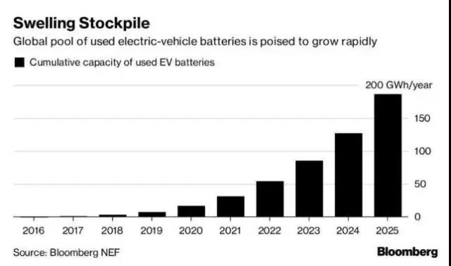 Bloomberg NEF 的數(shù)據(jù)顯示,預(yù)計(jì)到 2025 年,全球電動(dòng)汽車電池模塊庫(kù)存將超過(guò) 340 萬(wàn)個(gè)(今年約為 5.5 萬(wàn)個(gè)),尋找再利用這項(xiàng)技術(shù)的方法變得越來(lái)越緊迫。