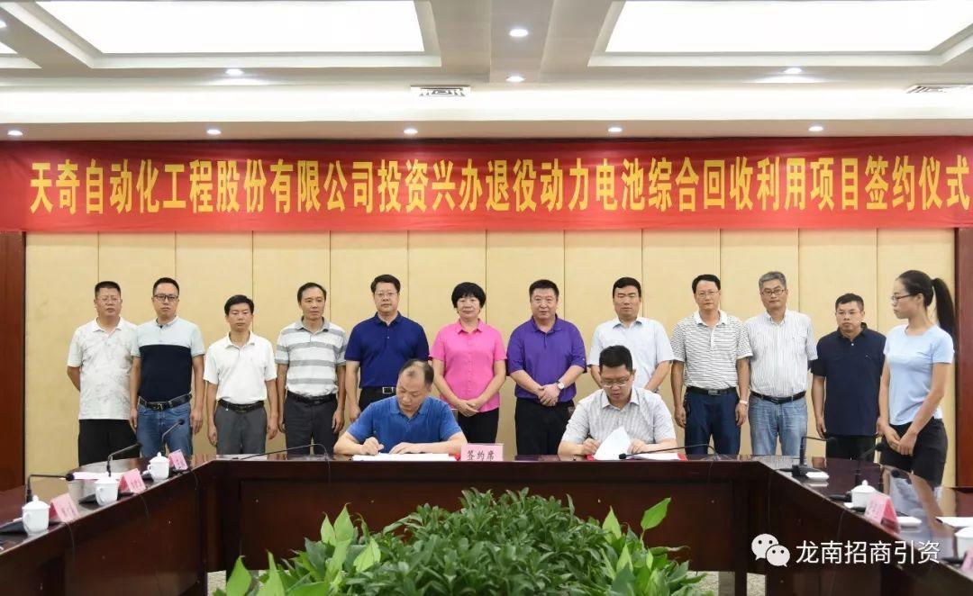 中國儲能網(wǎng)訊:7月2日,江西龍南縣舉行天奇自動化工程股份有限公司投資興辦退役動力電池綜合回收利用項目簽約儀式,龍南經(jīng)開區(qū)黨工委書記、縣委書記繆蘭英主持簽約儀式,龍南經(jīng)開區(qū)黨工委副書記、管委會主任、縣委副書記、縣長邱建軍,以及區(qū)縣領(lǐng)導(dǎo)鄒大勇、吳昊、劉建華、葉雪平、王冰、賴子安等出席簽約儀式。