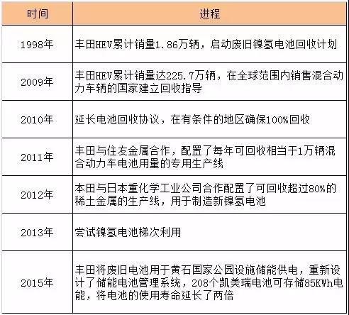 從后續(xù)豐田鎳氫電池回收利用時(shí)間表來看,其在鎳氫電池回收方面的底蘊(yùn)確實(shí)深厚。