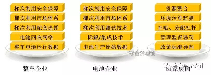 電池梯次利用的發(fā)展趨勢,自然是不言而喻的。國家政策、標(biāo)準(zhǔn)也相繼配套出臺,責(zé)任也很清晰。但是,梯次利用節(jié)奏動作緩慢,瓶頸問題在哪里呢?我覺得有幾個方面:“整車和電池企業(yè)還沒有想好”“看不見利潤”“再利用產(chǎn)品賣給誰”“回收數(shù)量和品質(zhì)差異性大”“梯次末端報廢的電池誰來回收、如何有效回收”。說白了,還是利益不夠吸引、體系沒有建立起來,產(chǎn)業(yè)鏈、價值鏈條還沒有形成。從技術(shù)、市場角度,讓我們一起看看,整車企業(yè)、電池企業(yè)、國家在梯次利用中的潛在優(yōu)勢。