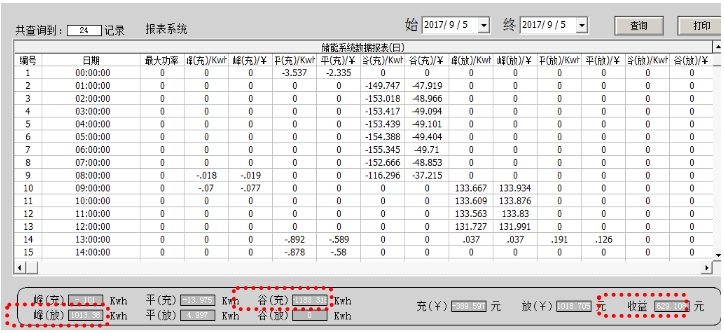 注:2017年9月5日,谷時充電1183kWh,峰時放電1013kWh,谷充389元,峰放1018元,收益629元。