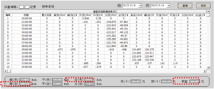 注:2017年9月6日,谷時充電1193 kWh,峰時放電1009kWh,谷充391元,峰放1014元,收益623元。