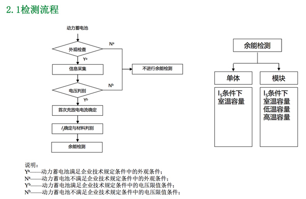 廢舊動(dòng)力電池經(jīng)過長時(shí)間的使用,也可能出現(xiàn)物理結(jié)構(gòu)的松動(dòng)和電解液漏液等情況,給廢舊動(dòng)力電池二次利用帶來安全隱患。因此,廢舊動(dòng)力電池的剩余容量的檢測方法無疑是其二次使用安全的重要保障?!队嗄軝z測》規(guī)范了動(dòng)力電池外觀檢查、極性檢測、電壓判別、充放電電流判別、余能測試等檢測流程,為車用動(dòng)力電池的余能檢測提供評價(jià)依據(jù)。標(biāo)準(zhǔn)的實(shí)施,將有助于提高廢舊動(dòng)力蓄電池余能檢測的安全性和科學(xué)性。