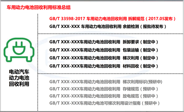 6月29日,GB/T33598-2017《車用動(dòng)力電池回收利用拆解規(guī)范》(下稱《拆解規(guī)范》)及《車用動(dòng)力電池回收利用余能檢測》(下稱《余能檢測》)國際標(biāo)準(zhǔn)宣貫會(huì)正式在張家港舉行,據(jù)悉,《拆解規(guī)范》已于5月17日公示發(fā)布,并確定于2017年12月1日正式開始實(shí)施?!队嗄軝z測》已經(jīng)通過報(bào)批,有望于2018年內(nèi)正式發(fā)布實(shí)施。