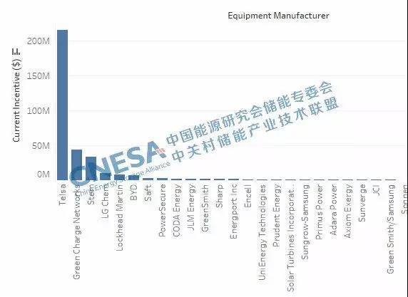 圖:不同儲能廠商獲得SGIP補貼的項目規(guī)模和數(shù)量