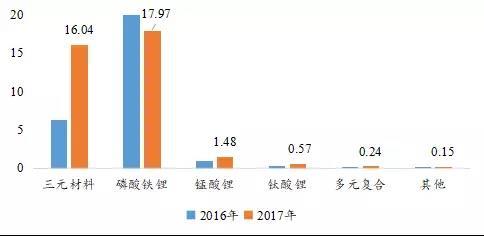 2016和2017年新能源汽車不同材料電池裝機(jī)量情況23(單位:GWh)