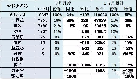 插混車型18年1-7月的很好,成為表現(xiàn)最強的動力類型。