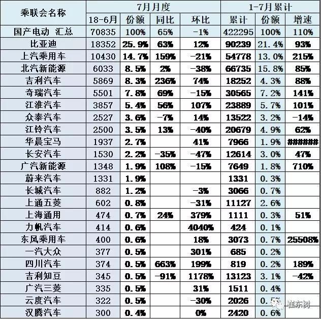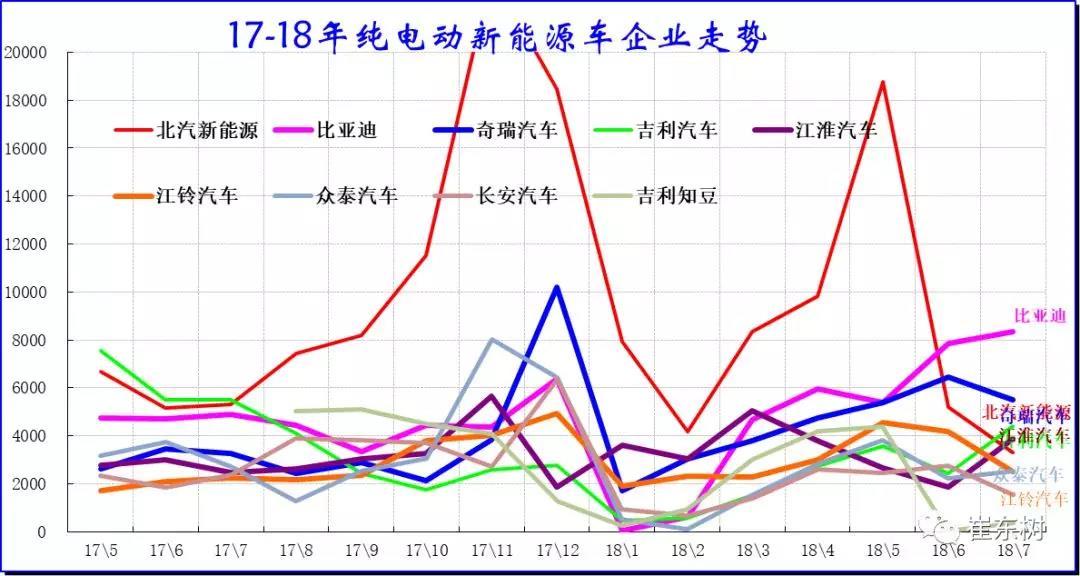 比亞迪18年表現(xiàn)優(yōu)秀,1-7月同比暴增93%。奇瑞和五菱的新能源表現(xiàn)特別好。