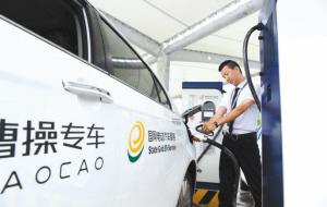 國(guó)網(wǎng)電動(dòng)汽車公司工作人員在為電動(dòng)專車充電。許暢 攝
