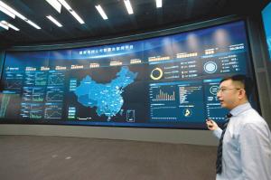 在國(guó)家電網(wǎng)車聯(lián)網(wǎng)監(jiān)控大廳,工作人員向記者介紹車聯(lián)網(wǎng)平臺(tái)。 鄭永生 攝