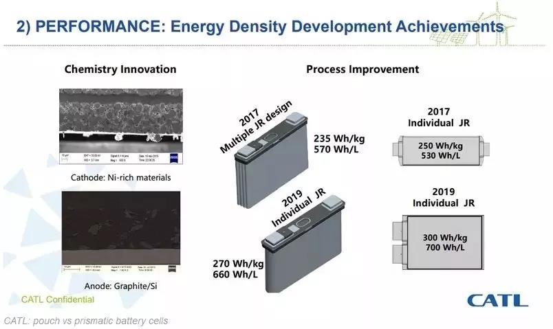 然而,路透社的消息來源卻有點路邊社的意思。由于此前CATL首席技術(shù)官羅伯特·蓋爾揚(Robert Galyen)曾展示單體電芯以及模組的產(chǎn)品路線圖。路線圖顯示,CATL將在2019年計劃生產(chǎn)230Wh/Kg的電芯產(chǎn)品。而路透社向相關(guān)業(yè)內(nèi)人士進(jìn)行咨詢,該人士認(rèn)為該產(chǎn)品的性能參數(shù)正與NCM811體系相符合。因此稱CATL將在2019年量產(chǎn)811。