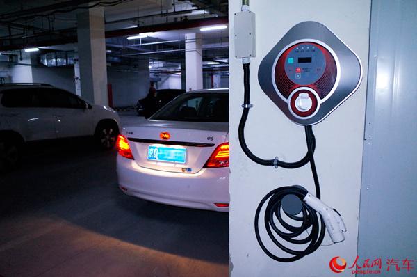 孫女士的比亞迪e5和地下車(chē)庫(kù)的充電樁
