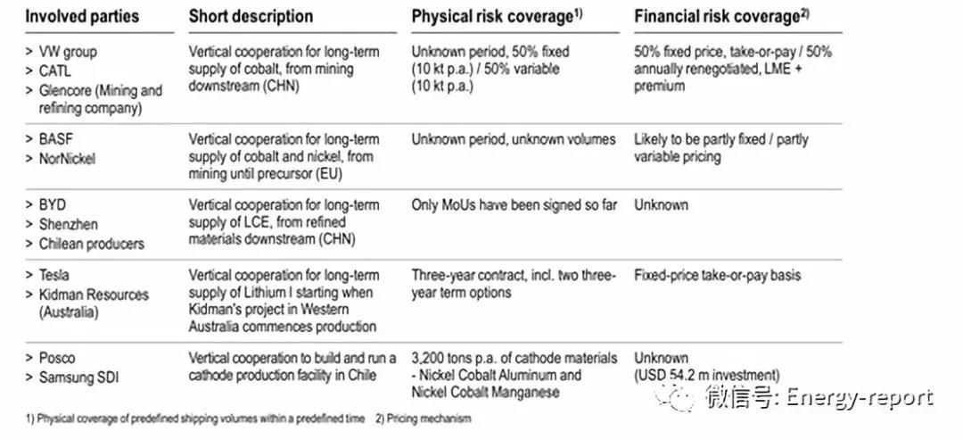 目前的例子表明,主要市場參與者認為,綜合價值鏈戰(zhàn)略是最有效的措施。電池制造商可以根據(jù)縱向整合的程度,控制部分價值鏈,并在較小范圍內(nèi)平衡原材料和前體材料的價格。然而,對整個物質價值鏈的控制越強,競爭優(yōu)勢就越大。但同時,財政承諾和風險也越高。