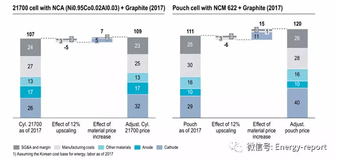 展望未來,推出下一代電池(從基于NCM622的化學物質到具有高于70%的Ni比例的化學物質)的預計成本會降低20%至25%。價格下降的關鍵因素是每個電池的能量增加。除了降低總費用外,物質成本的份額將比今天的約50%增加約5個百分點。2020年后,未來的電池一代將進一步增加材料成本的份額。