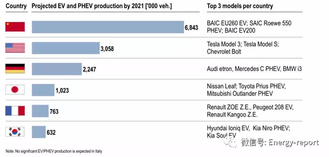 圖6:在電動汽車/混合動力電動汽車生產(chǎn)方面,中國保持著明顯的領先地位美國位居第二,德國占了一些優(yōu)勢
