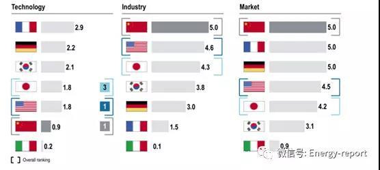 >在2018年的電動移動性指數(shù)中,中國仍處于領先地位。盡管法國在技術方面占領優(yōu)勢,但中國在工業(yè)和市場動態(tài)方面繼續(xù)領先。(圖2)